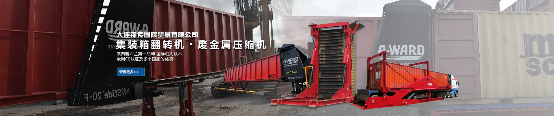 大連錦傳國際貿(mào)易有限公司于2013年11月與新西蘭A Ward公司達成戰(zhàn)略合作,成功代理集裝箱翻轉(zhuǎn)機、廢金屬壓縮機等產(chǎn)品在中國大陸的銷售、維護及保養(yǎng)業(yè)務。本公司重合同、守信用,保證產(chǎn)品質(zhì)量,以經(jīng)營多種特色的產(chǎn)品和薄利多銷的原則,贏得了廣大客戶的信任與厚愛。現(xiàn)長期出口產(chǎn)品至澳大利亞,巴西,德國,俄羅斯,哥倫比亞,美國,泰國,羅馬尼亞,新西蘭 ,意大利,越南,印度,印度尼西亞等國家。